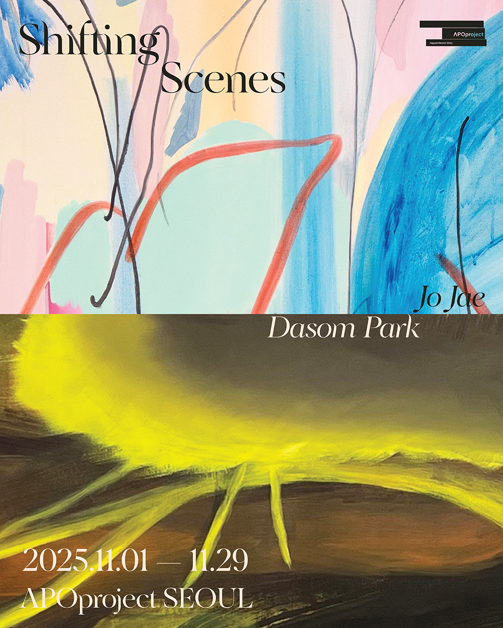 The exhibition preface will be replaced by an interview featuring the lives and behind-the-scenes stories of contemporary artists Jo Jae and Dasom Park, conducted by Goeun Jeong, Director of APOproject, and Chaeyoon Won, Head Curator of White Block. It will be available for distribution starting November 5 and can be accessed through the APOproject website (apoproject.com).